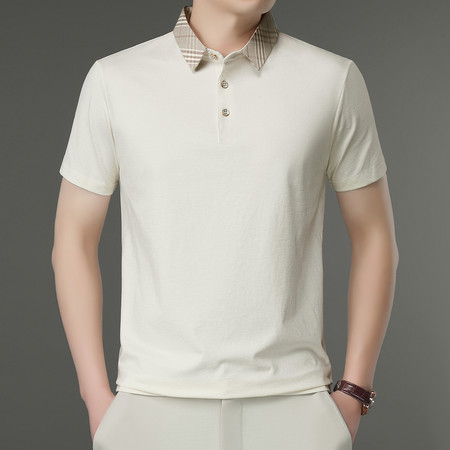 豪琪男装&夏季爆款小立领2两粒扣打孔工艺短袖8266款(老钱风)